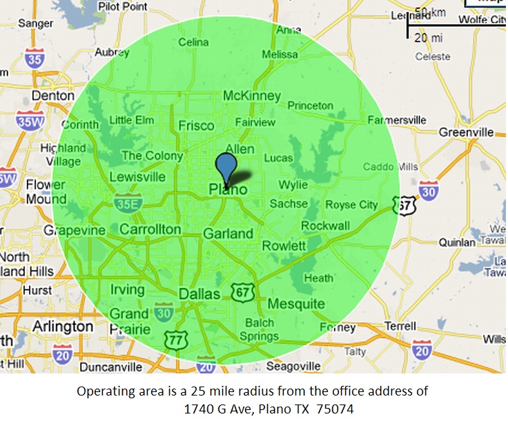 Plano Housing Authority has a 25 mile radius jurisdiction from our Administrative Building located at 1740 Ave G, Plano TX 75074. Click the map below for a larger version.